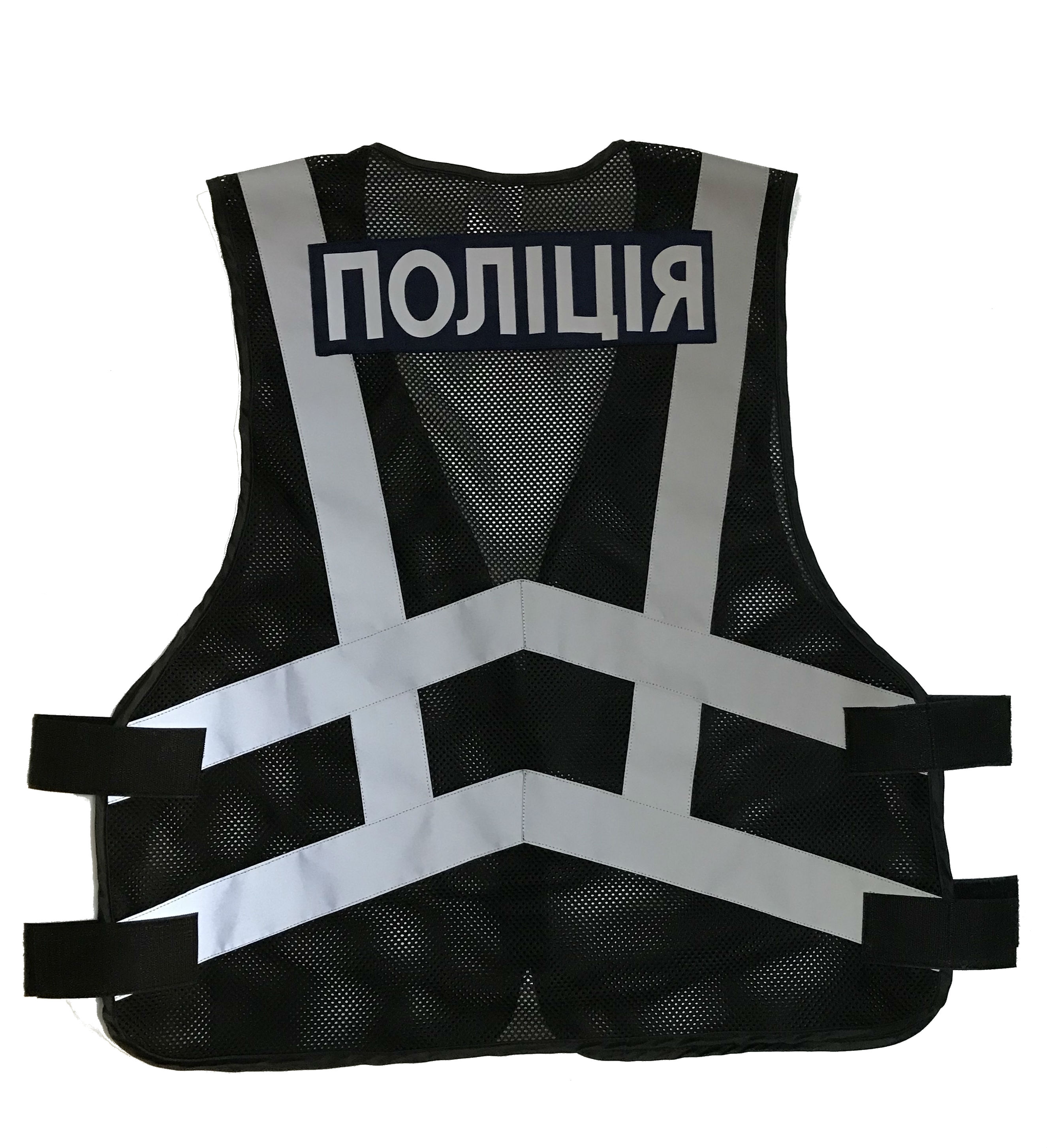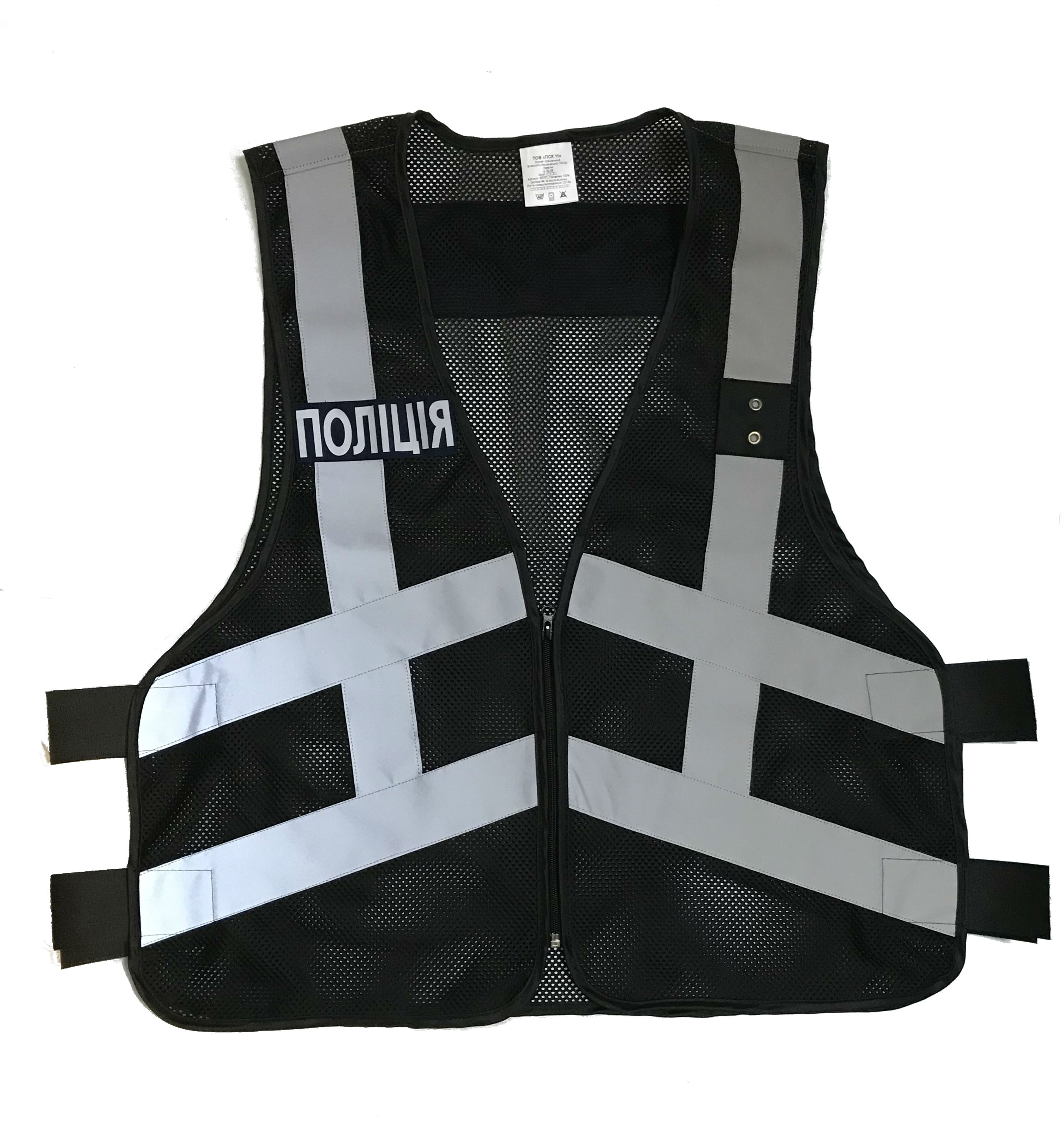 Жилет светоотражающий «ПОЛІЦІЯ» (черный) на молнии